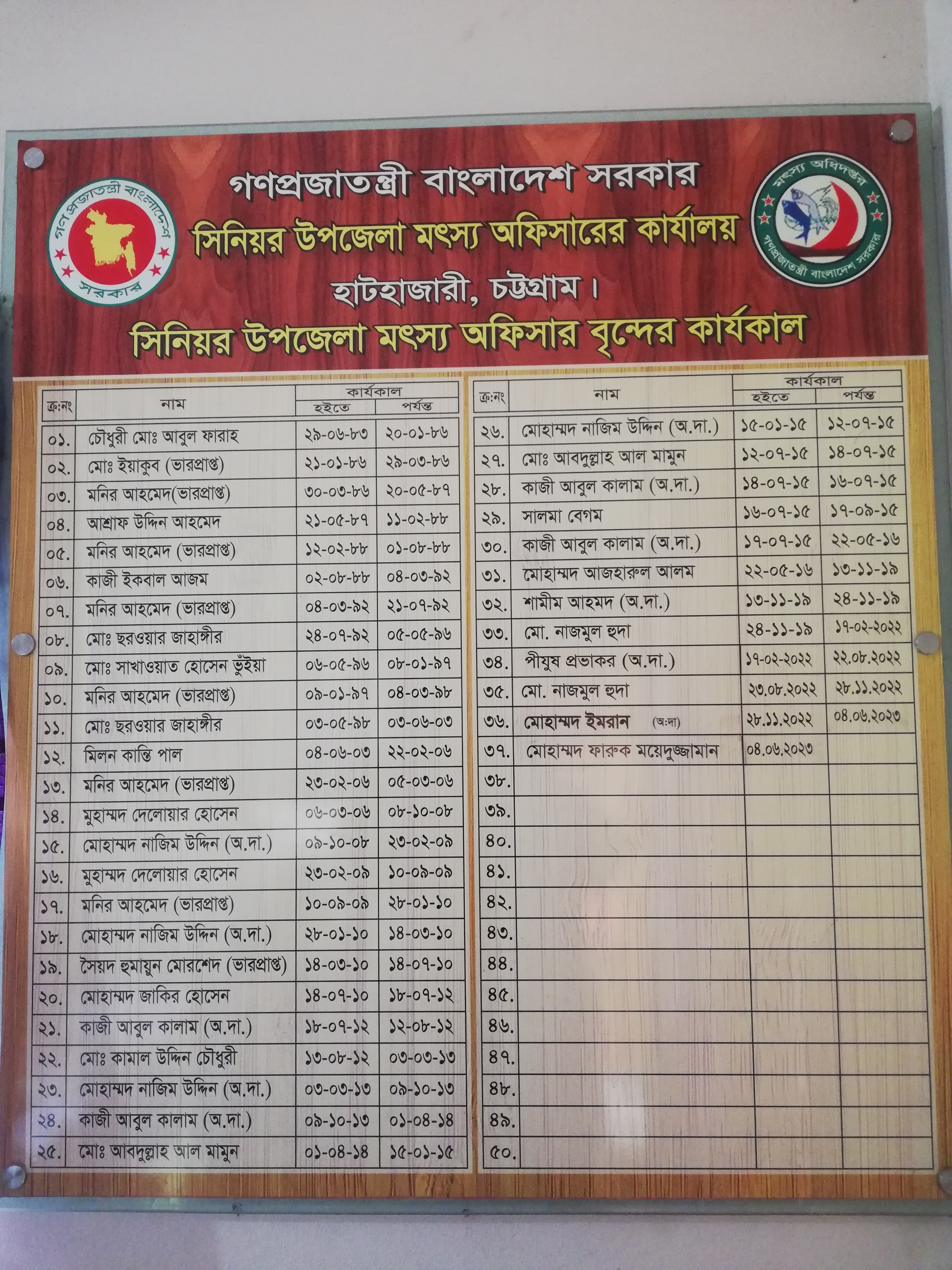 প্রাক্তন অফিস প্রধানগণেরর তালিকা